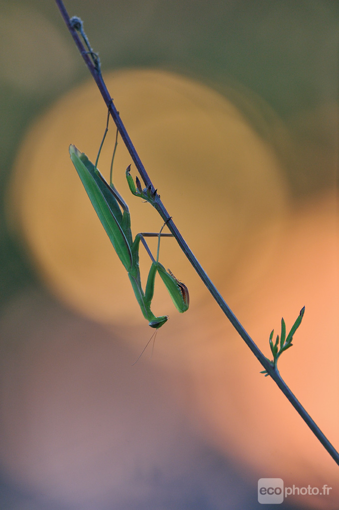 Chaque jour, c’est le même rituel : immobile parmi les hautes herbes, les pattes avant s’élevant au ciel, la mante religieuse fait sa prière du soir. Elle espère qu’un mâle suffisamment dégourdi viendra à sa rencontre pour le diner. Après tout, un peu d’amour avant le repas n’a jamais fait de mal à personne. Mais pour l’heure, elle patiente. Avec ses grands yeux, elle observe les alentours. Hormis une grosse masse sombre qu’elle ne saurait identifier, rien ne bouge. Pas une sauterelle, pas un criquet. Aurait-elle été repérée ? Peu probable. Sa couleur se marie parfaitement avec celle de la végétation, bercée par les derniers rayons du soleil. Par moment, elle perçoit des vibrations émanant de toutes les directions. Ses antennes ne peuvent la trahir, il se passe quelque chose d’inhabituel. Serait-ce lui ? Elle n’a pourtant pas souvenir d’un tel charisme. Tous les mâles qu’elle a rencontrés ont toujours été plus petits qu’elle. Certes ils savent mieux voler, mais à quoi cela peut-il bien servir ? D’autant qu’ils ont beau se mouvoir plus rapidement, aucun n’a réussi à lui échapper. Il faut dire que c’est plus fort qu’elle. Quand elle a faim, elle mange. C’est aussi simple que ça. Et force est de constater que l’amour ouvre l’appétit. Soudain, elle l’aperçoit. Il ne l’a pas encore vue, mais il se rapproche. Encore quelques centimètres et lui aussi la verra. Elle sait qu’il ne pourra résister. Alors quand il arrive à sa hauteur, elle n’est pas étonnée de voir briller ses yeux. Un simple regard suffit d’ailleurs à le convaincre de passer à l’acte. Commence alors un ébat bien loin de la cruauté dont on l’accuse d’ordinaire. Mais tout à coup, tandis que la faim commence à se faire sentir, elle peut clairement discerner un « clic-clac » juste derrière elle. Curieuse, elle tourne la tête à 180° en direction de la source. Puis, tout s’enchaine très vite. A peine a-t-elle le regard tourné, que son partenaire en profite pour déployer ses ailes et s’envoler. Jamais une telle chose ne s’était encore produite. Et jamais plus elle ne devra se reproduire. Alors seule et l’estomac vide, elle se fait la promesse de ne plus jamais se laisser distraire par un vulgaire… photographe !